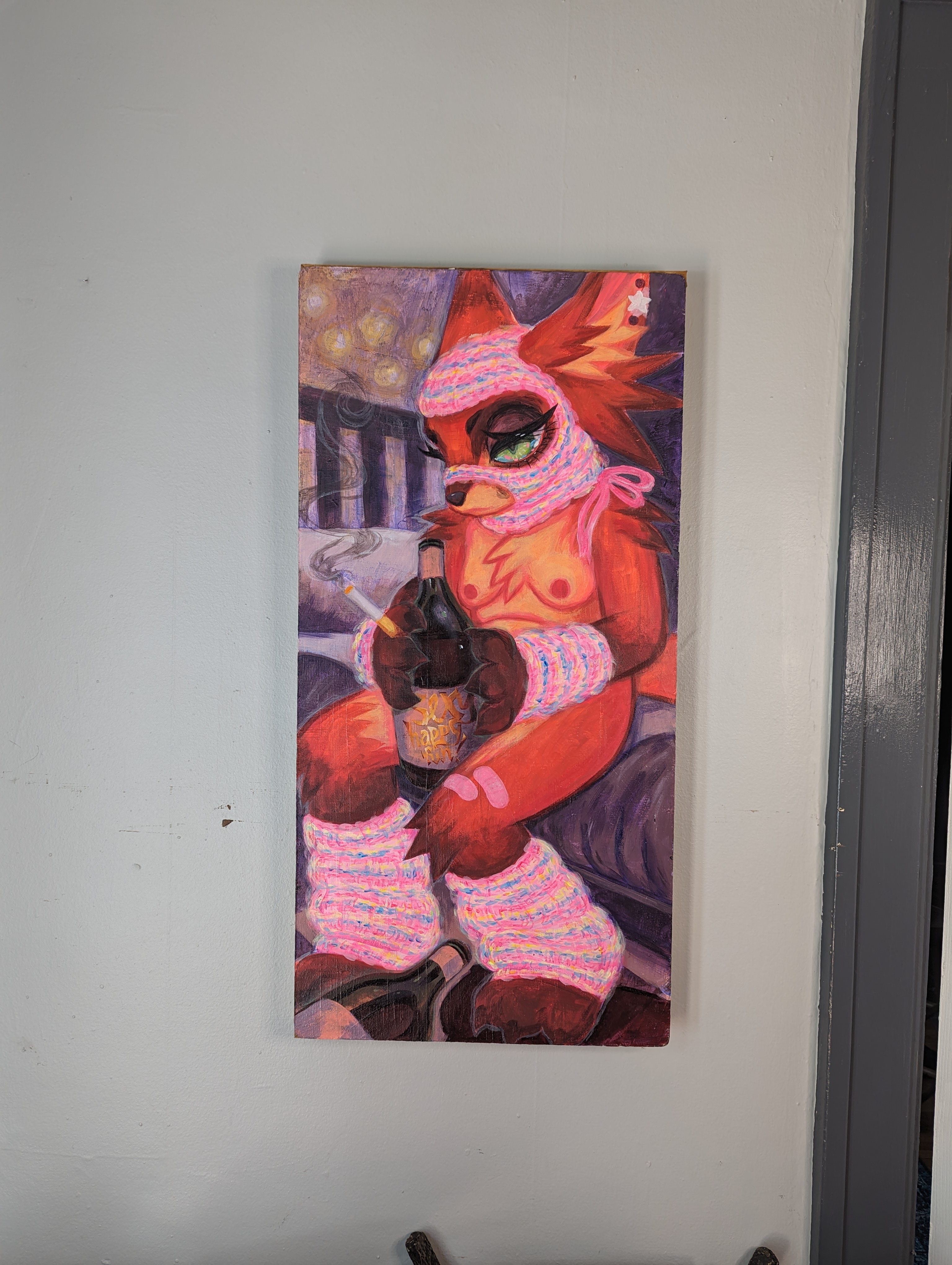 Drunken foxy! Acrylic on masonite backed with 1.5in pine (deep) 3 feet x 1.5 feet
